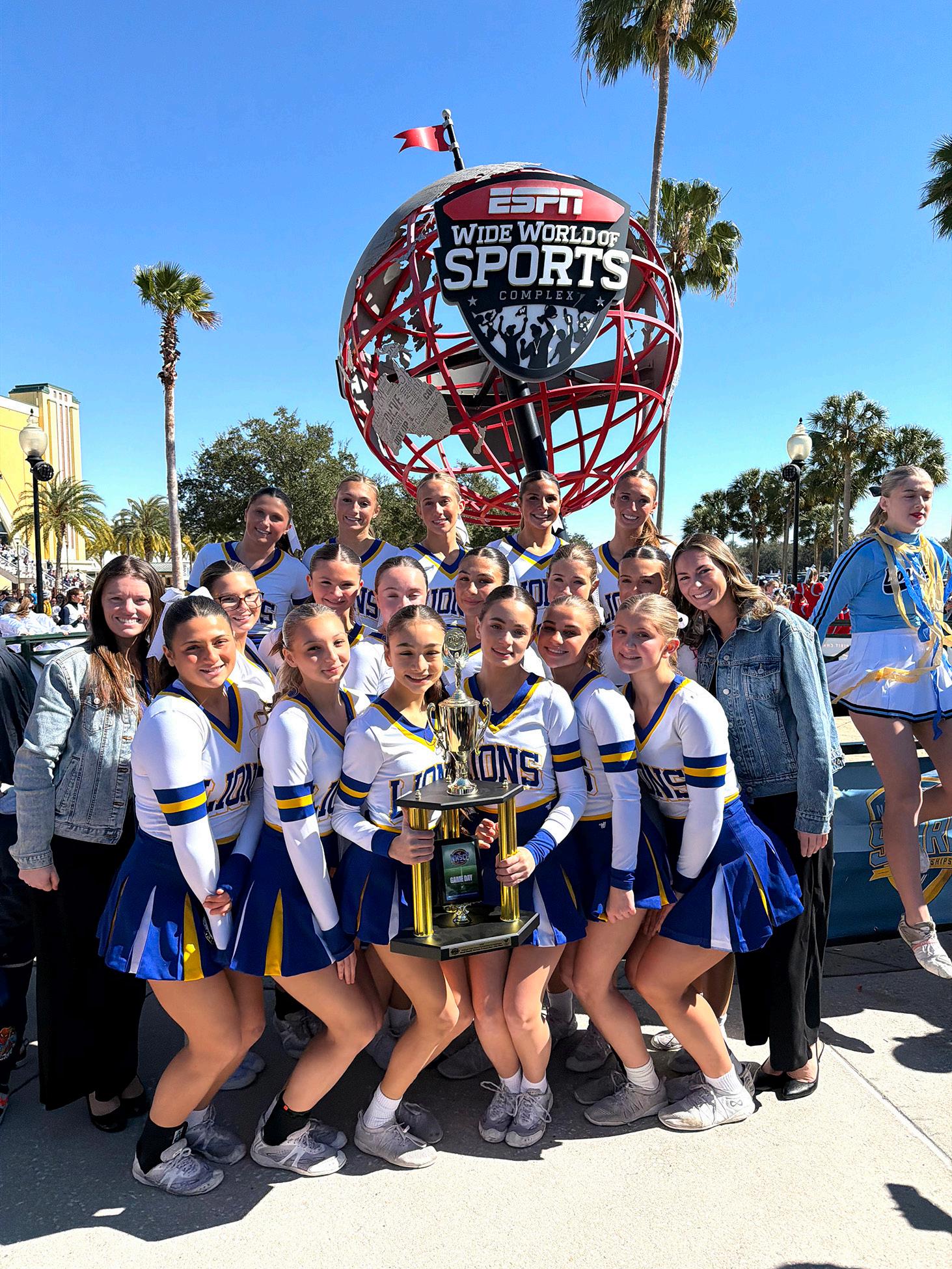 The West Islip High School Varsity Cheer Team recently made school history at a national cheerleading competition held in Orlando, Florida. Competing at Nationals from January 30 through February 1 at Walt Disney World, the team became the first in WIHS history to qualify for finals in both Game Day Cheer and Traditional Cheer — a milestone never before achieved by a West Islip team.