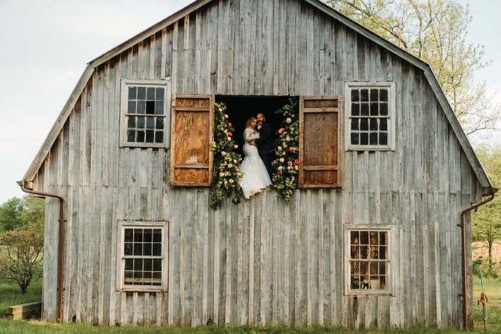 Back on their wedding day in April 2020, the barn still bore the imprint of its humble origins with a dirt and gravel floor. Dirt was certainly kicked up by their boots, as the couple danced all night with their closest family and friends. Soon after, Jason, a retired Special Forces Army O cer, hung up his combat boots and traded them for his farm ones. Aubry remains “so proud of his contribution to the US Army and his pride in serving our country well.”