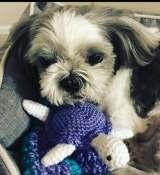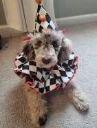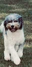 Here’s a little more about Marco (left) from Amy Colangelo: Marco is a 4 year old Aussiedoodle, who was born on Christmas Eve. He is very playful and energetic. He loves hanging out with his three brothers and his sister and will sometimes pick on his brother Oatie (our cat). His favorite toy is his corn on the cob that he stole from his cousin Jersey (a golden doodle), and his favorite treat is peanut butter nubz. He loves to accessorize with bandanas or a bow tie-- and he will actually cry if he doesn’t have one on. If you play fire engine sounds, he will sing along (howl). He is a very loved and spoiled puppy who greets all of the neighborhood dog friends passing by his house.