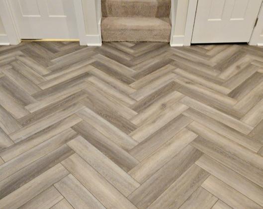Use engineered or natural hardwood to create a custom pattern layout. Herringbone wood flooring features a distinctive zigzag pattern formed by rectangular planks laid in a staggered, fishbone shape, creating a sense of movement and texture. Known for its elegance and versatility, it complements classic and modern interiors, making it a popular choice for custom, high-end spaces. Chevron wood flooring is created by cutting planks at an angle and joining them to form a sharp, continuous zigzag pattern with clean, pointed seams. Unlike herringbone, which has a staggered look, chevron