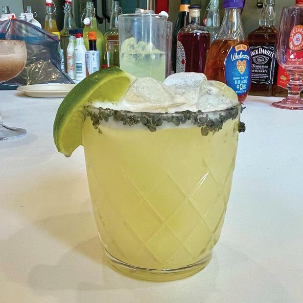 Garnish: Lime Wedge; 1/2 Rim of Black Lava Salt