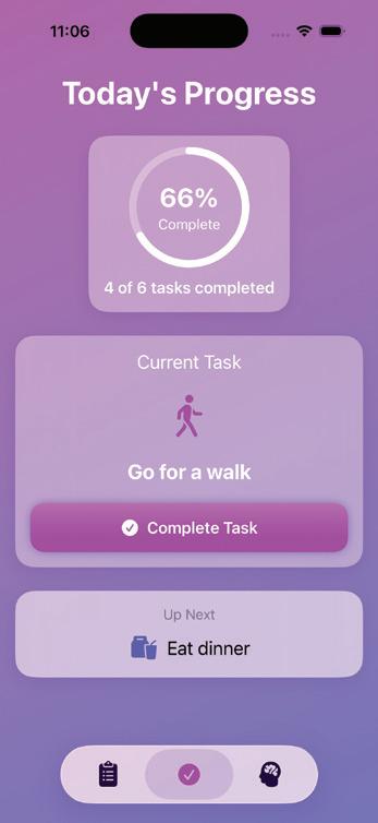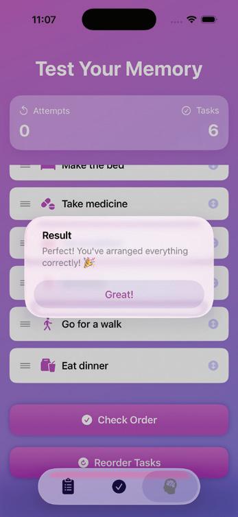 Through perseverance and passion, Pranav transformed an idea into a working tool that makes life easier. “The biggest goal with ReCheck is to restore some degree of independence to people experiencing memory loss,” Pranav notes. “It’s difficult having to rely on others for simple dayto-day tasks, so ReCheck is designed around telling someone experiencing memory loss what tasks they do (through the Task Checker) and helping them remember their daily tasks even without the app (through the Memory Game).” The potential impact of ReCheck extends beyond his own family, sparking opportunities to change lives with the simple implementation of an app in their daily lives.