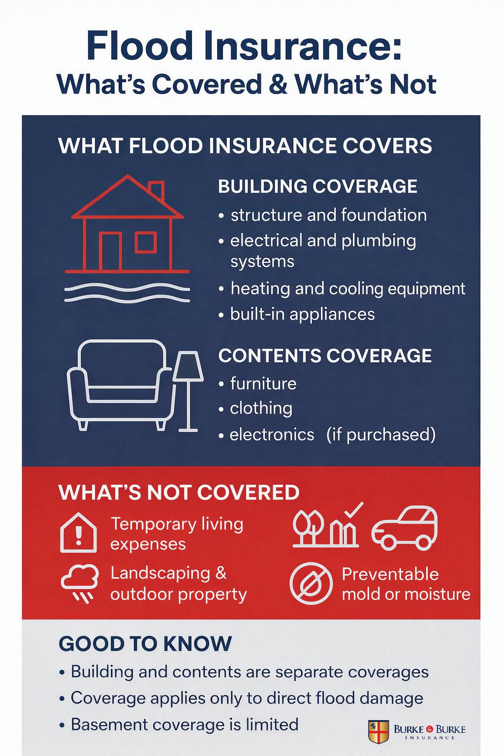 Now, let’s look at what flood insurance typically covers: