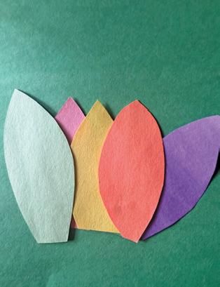 - Cut five leaf shapes from colored construction paper.
