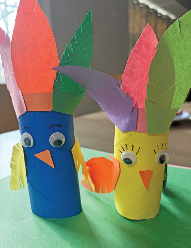 - Paint the toilet paper roll yellow, blue, or any color you want your bird to be.