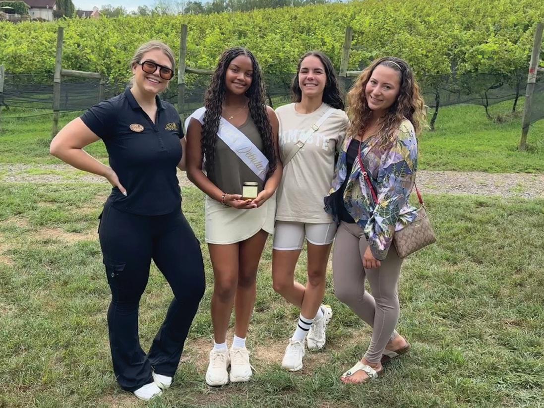 Debutante Elle Smith with event sponsors: Becca Manning, Potomac Point Winery and Vineyard; Lisa Henderson, Yoga Instructor; and Karla Gonzalez, Beauty Bees Boutique. Elle is holding a candle donated by Brittany Marshall, Clean Slate Bath & Body.