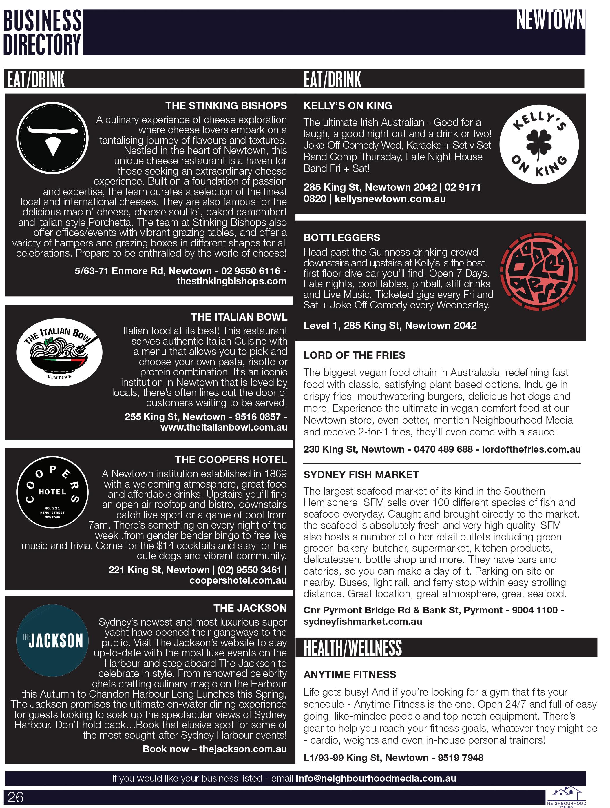 We check out what’s coming up at New Theatre, chat to Rafael Bonachela about his new production momenta , there’s a What’s On Guide, a round-up of the BEST local Happy Hours and weekly specials + HEAPS more.