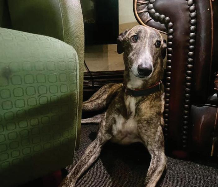 COLIN - This 5 year old Greyhound considers himself a gentleman. He displays impeccable manners at all times, especially when soliciting chips from new friends at the pub. Colin’s average day includes around 22 hours of hardcore couch potatoing and one minute of speed noodling. The rest of the time he can be found politely demanding pats at Hollis Park. Enrol Today