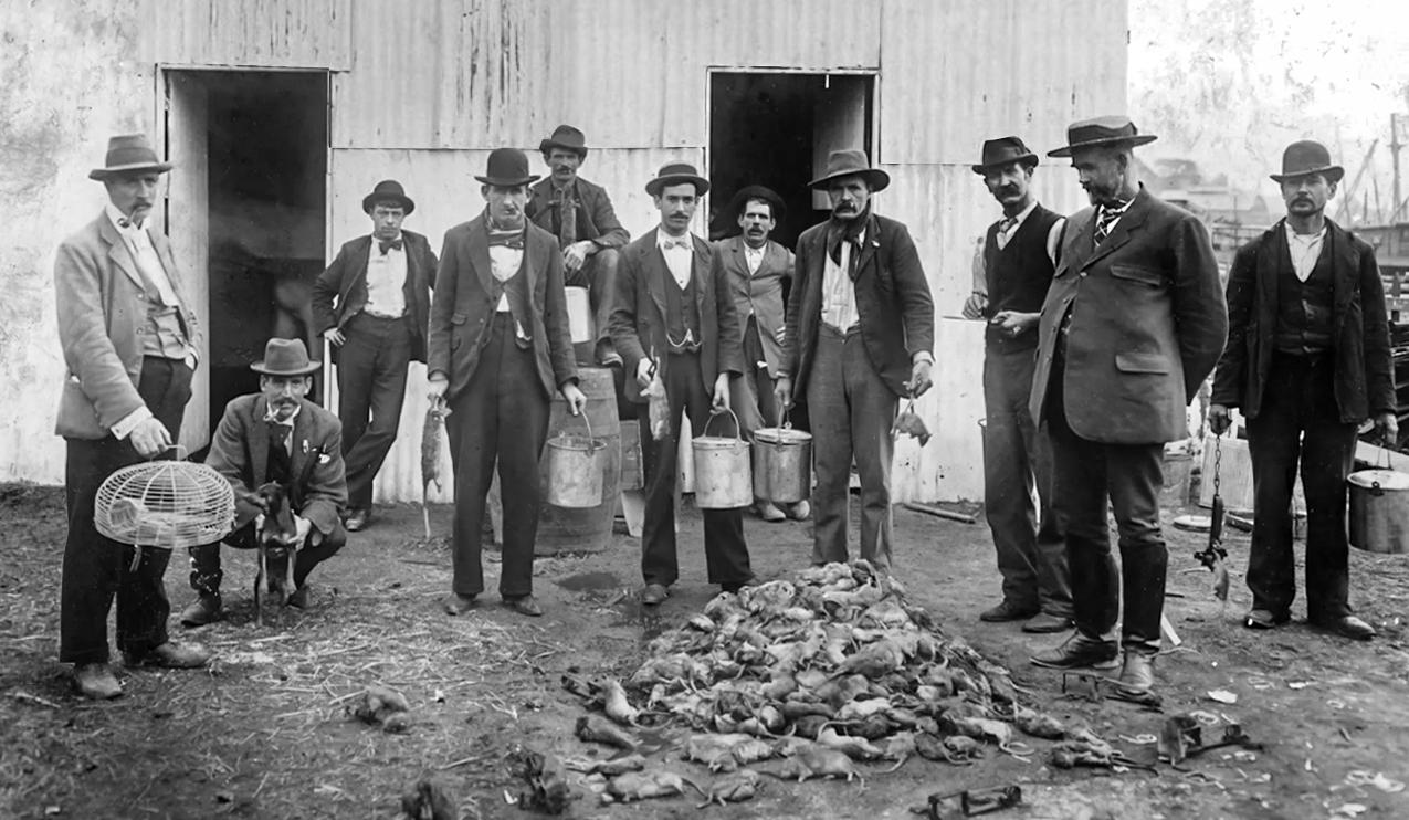 The contagion, carried by rats, arrived after a slow but deadly transmission through Southeast Asia, following an 1894 resurgence of the dreaded ‘Black Death’ in Hong Kong. (Now categorised as The Third Plague Pandemic, it actually began earlier in Yunnan, China, in 1855).