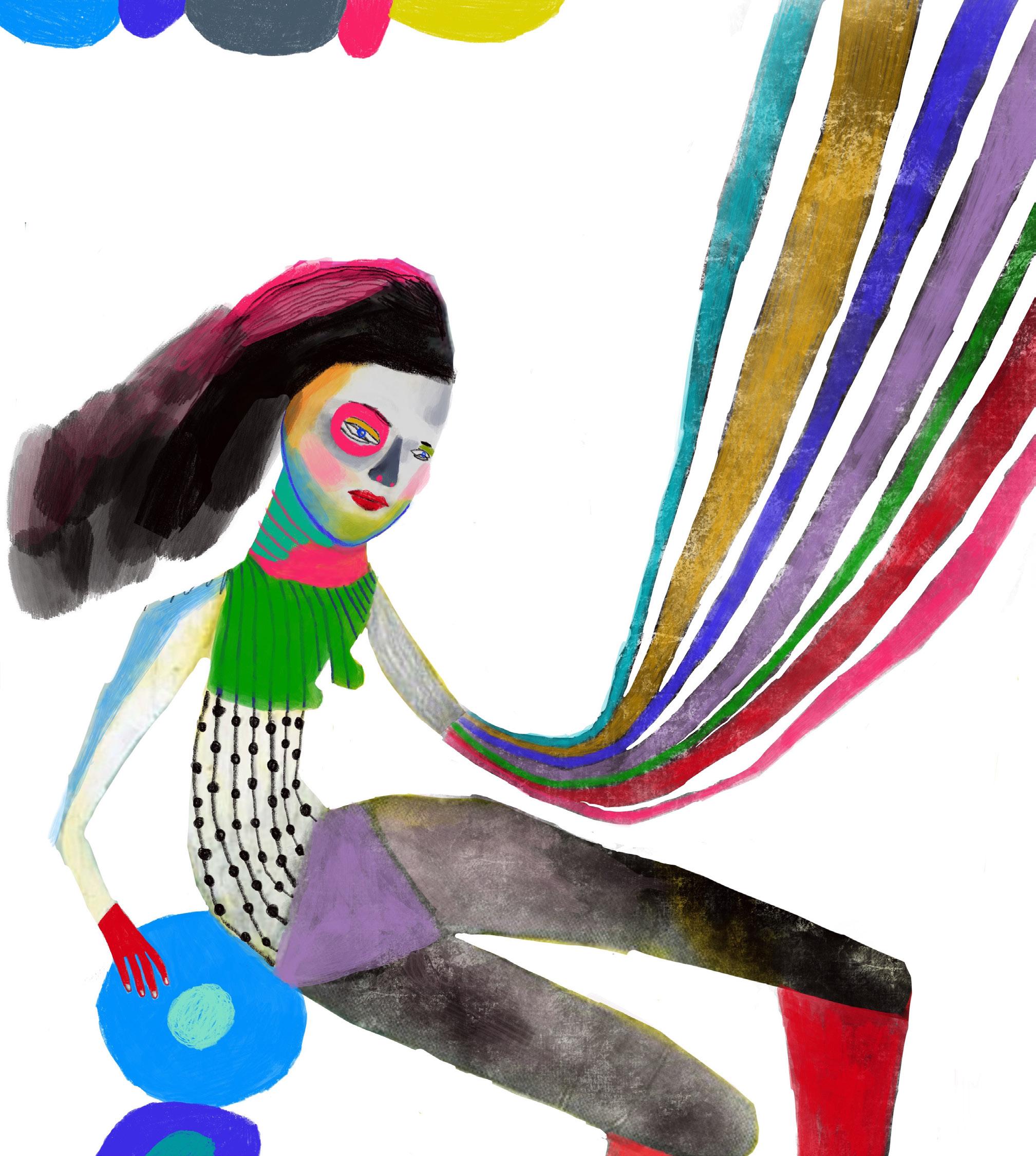 Goto’s paintings are bold, bright, and colourful, evoking uplifting emotions. They focus mainly on the human condition and her own perspective on people and nature.