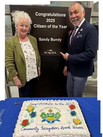 Many exceptional Aurorans and organizations were recognized on May 26th Town of Aurora Community Recognition Awards. Among the honourees was Ms. Sandy Bundy, who received the prestigious title of 2025 Aurora Citizen of the Year. In addition to the Citizen of the Year, the Community Recognition Award winners for the evening included; Shadowpath Theatre Productions - Arts and Culture Award, Lauren Hanna - Community Leadership Award, Neighbour Media - Good Business Award, Jim Jackson - Good Neighbour Award, STEM Minds Inc. - Green Award, Alison Hughes - Inclusivity Award, Glen Sharp - Older Adult Volunteer Award, Angela Fang, Hailey Graham and Naya Mueller - Youth Volunteer Award. Awards were also given out to volunteers in recognition of 20, 25, 40 and 50 years of volunteer service to the community. The service award winners were: 20 years; Glen Sharp. 25 years; Lisa DiSera, Terry Sherin. 30 years; Judy Ryan. 40 years; Alex Ansell, Ken McIssac, Grant Perry. 50 years; Bobby Pandolfi. Congratulations to all of the evening's recipients!