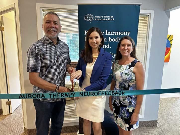 Aurora Therapy & Neurofeedback celebrated their o cial grand opening with family, friends Mayor Tom Mrakas and the Aurora Chamber of Commerce, on August 25th. Aurora Therapy takes a unique comprehensive therapy approach. Their therapeutic strengths go beyond talk-therapy by combining the most advanced psychotherapy techniques with the latest Neurofeedback methods such as High Frequency, Infra-Low Frequency Training, Synchrony, and Alpha-Theta Training. Visit auroraneurofeedback.com to learn more!