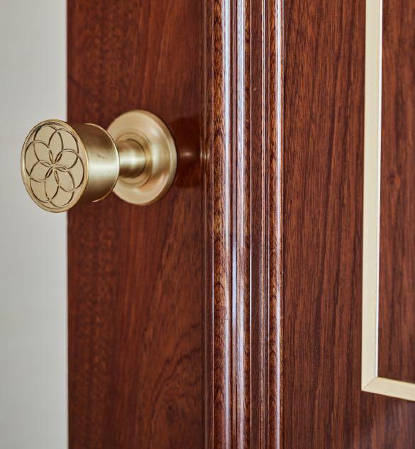 Due to the location of the raised beading on the door, the solid machined brass doorknob had to be a bespoke order, with an extended shaft to ensure the comfortable operation of the door with no scuffed knuckles. Unlike other aspects of the house, the doorknobs and light switches were purposefully specified in a satin finish to avoid unsightly fingerprints.