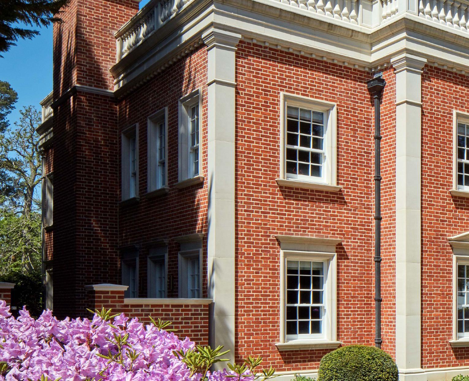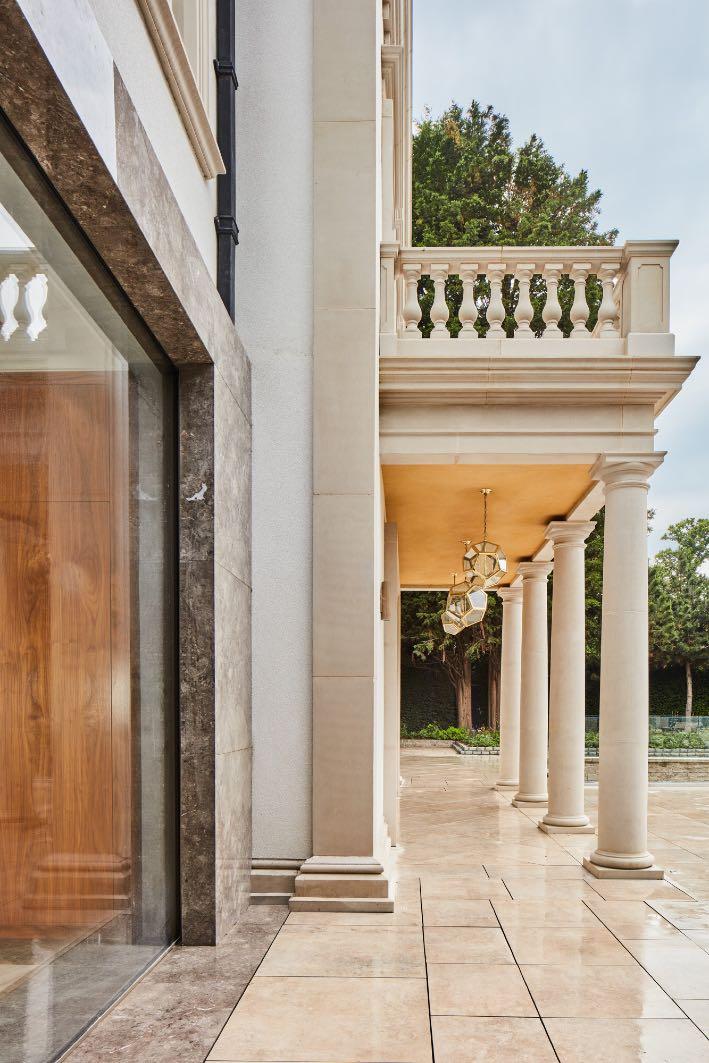 • Portland stone finish cast stone plinth, window surrounds, porticos, balustrades, tympanum, pilasters, cornice and copings.