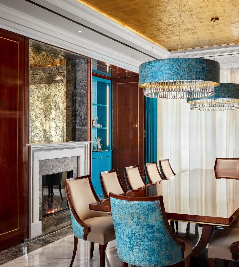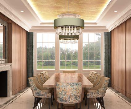 • Articulated ceiling with recessed led cornice and allowance for feature chandeliers.