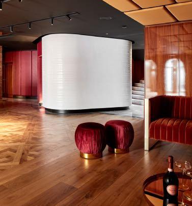 in a bulkhead over the bi-folding doors. It was not possible to fire rate these doors and ensure their ease of operation. Therefore, they are there to separate the dining space from the larger adjacent space to create a more intimate dining experience.