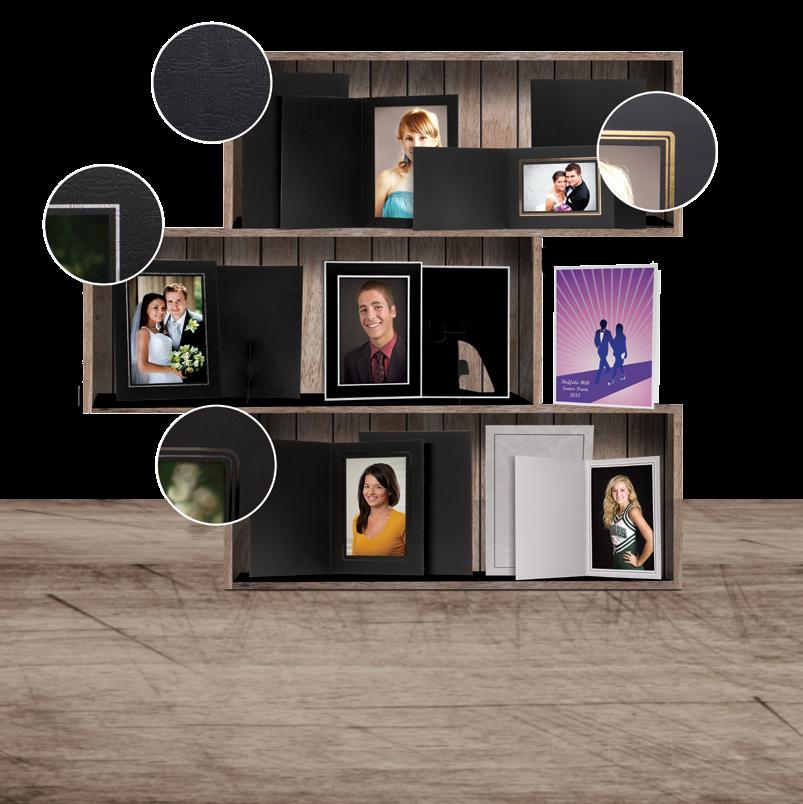 - Matte black paper with double-lined black trim