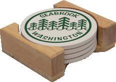1722 4 Pack Round Stone Coasters w/Wood Holder