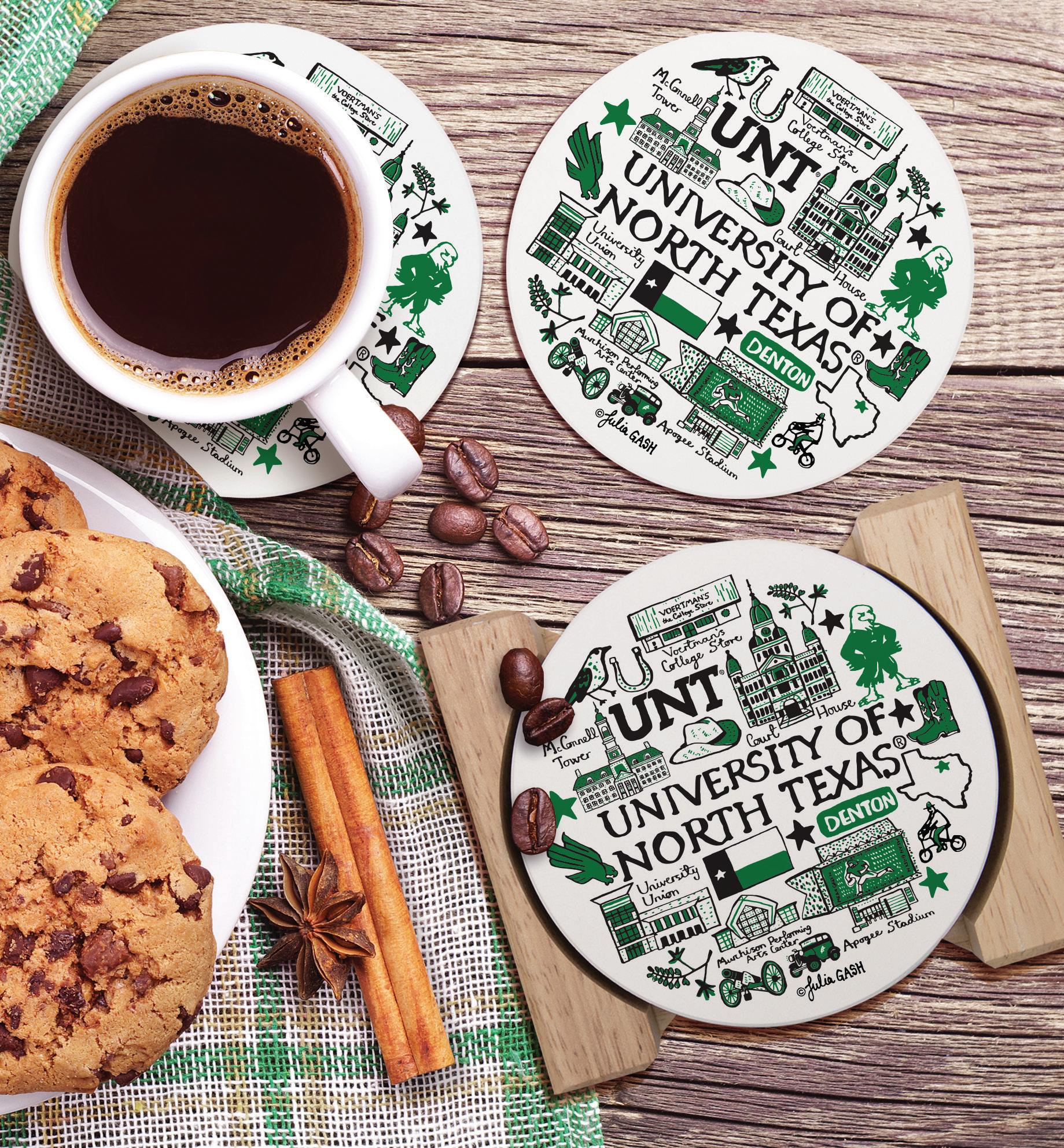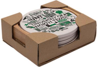 1722 4 Pack Round Stone Coasters w/Wood Holder