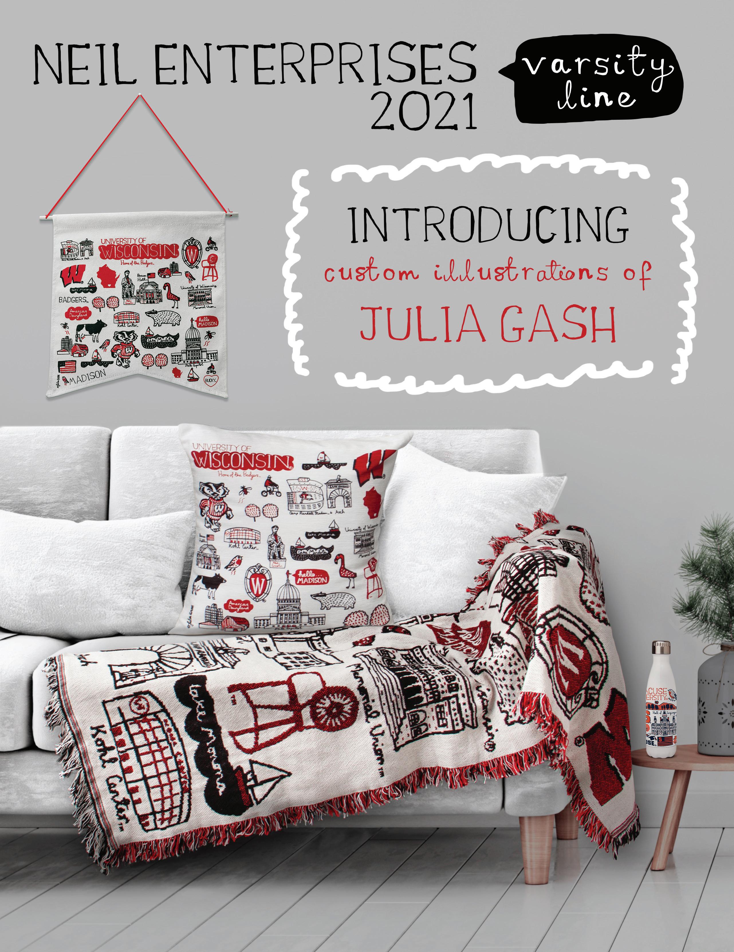 More recently, Julia has widened her portfolio to include North American college campuses in an exclusive agreement with Neil Enterprises Varsity Line.
