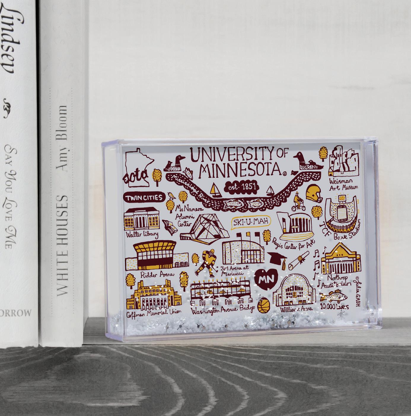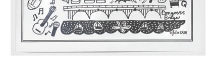 Julia’s designs connect people with place, whether they are culture vultures on tour or locals who want to celebrate their city in style. The whimsical illustrations communicate a child-like vision and o er a playful and honest interpretation of the world in which we live. A cyclist wearing a hat can be found in all of Julia’s “Cityscapes” and this little figure symbolizes Julia: travelling around the world through her art.