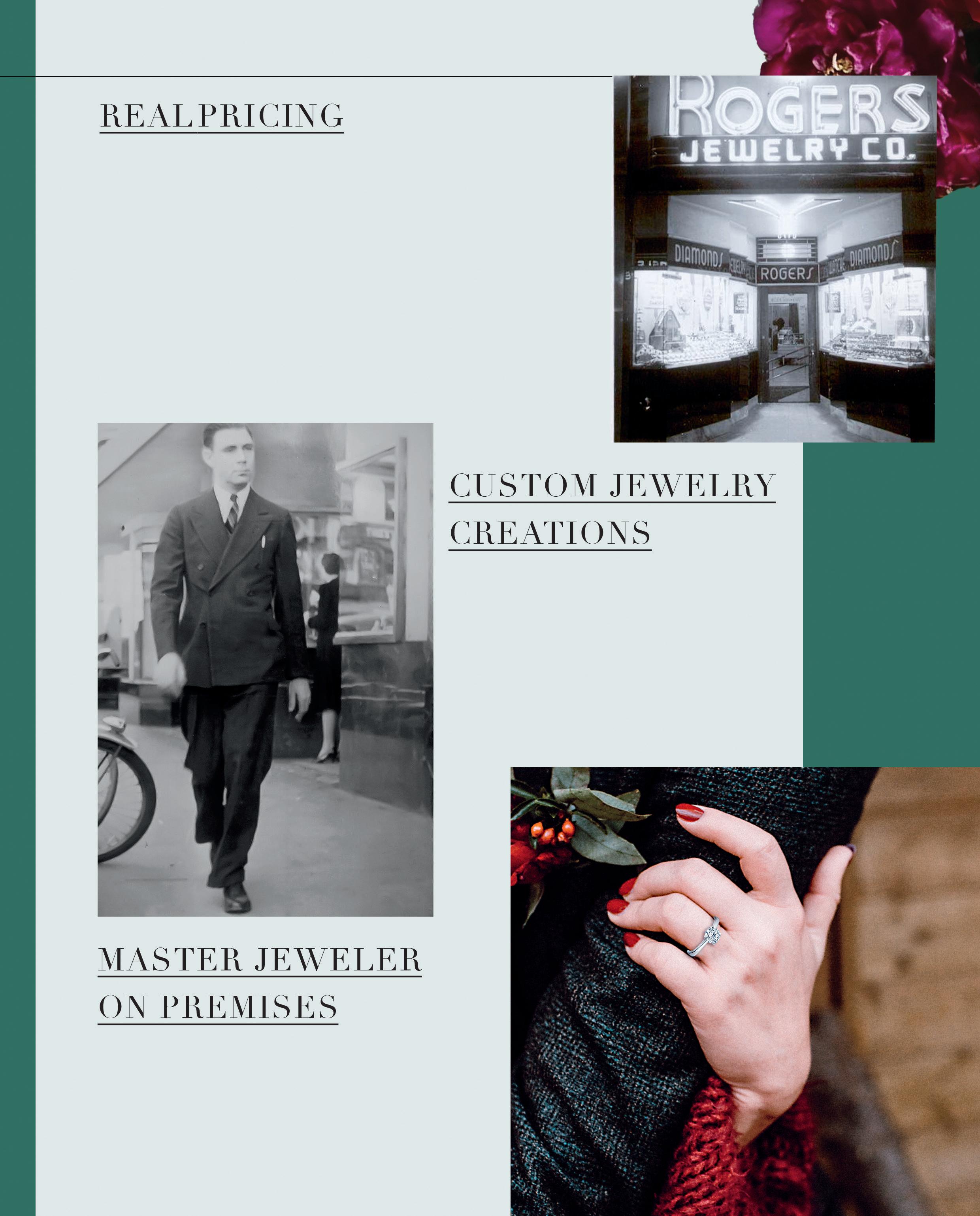 At Rogers we strive to have capable professionals always available to meet your needs, whether it is our knowledgeable and well-trained sales team, our design and custom jewelry experts, our finance team or our in-store jewelers. Whatever your jewelry needs, we are here to serve you.