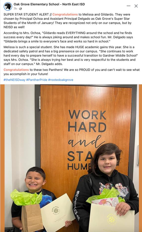 Posts on NEISD's Facebook page that reach 10,000 people are considered successful.