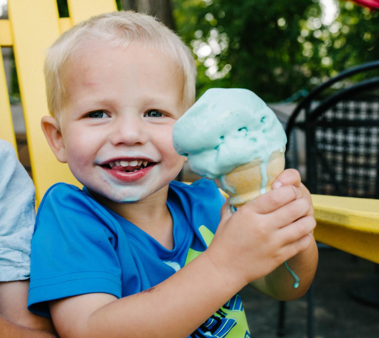 Then there are the many summer activities waiting to be discovered: kayaking (page 141), pickleball (page 150) and picnicking on the boat (page 128), among them. For the foodies, we’ve rounded up some of our favorite restaurants with lake views (page 125) and locally owned ice cream shops (page 112). Because, really … is there anything more timeless and soul-satisfying than eating an ice cream cone on a bench overlooking a glittering blue lake? Welcome, summer.