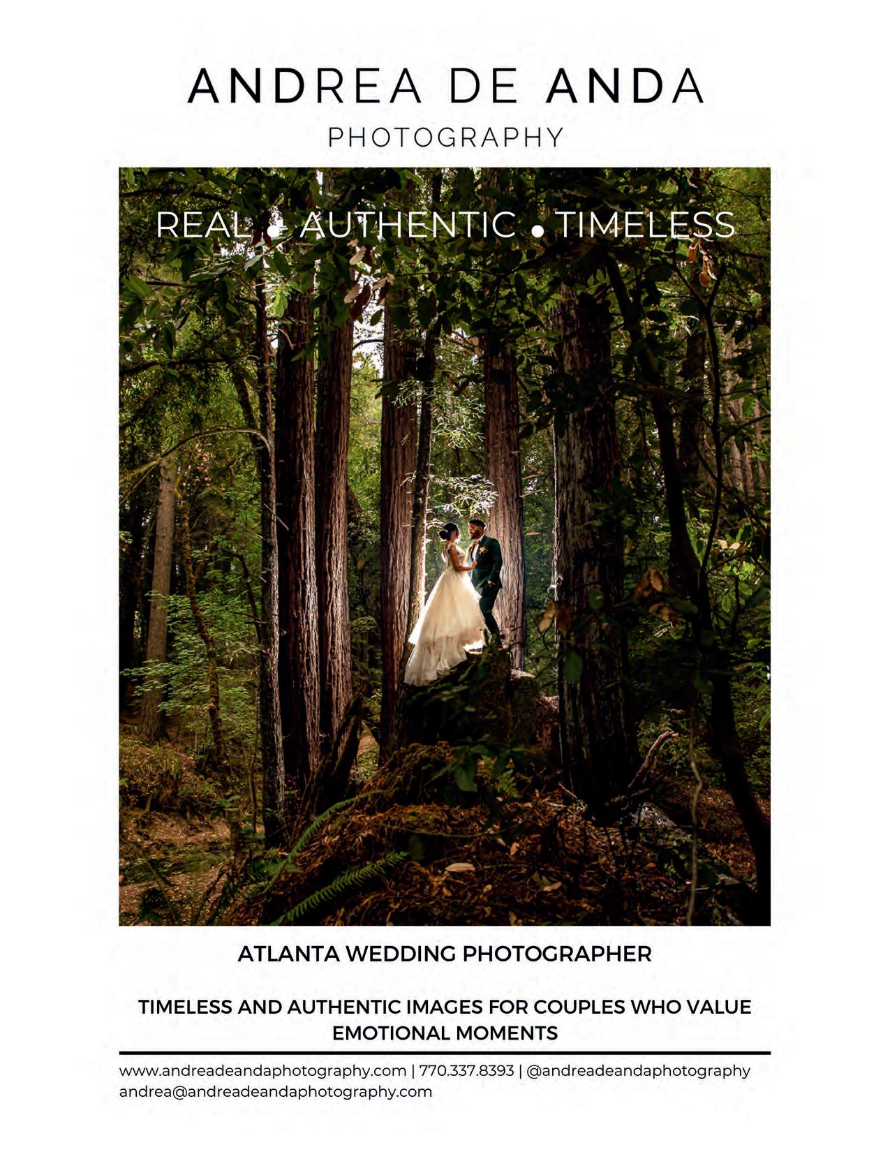 Atlanta Style Weddings is published annually by Nei-Turner Media Group, Inc., Copyright 2024. All rights reserved. Reproduction of any part of this publication without the express written consent of the publisher is strictly prohibited. Atlanta Style Weddings is a trademark of Nei-Turner Media Group, Inc. The unauthorized use of this trademark is strictly prohibited. The information in this publication is believed to be accurate. However, Atlanta Style Weddings cannot and does not guarantee accuracy. Atlanta Style Weddings cannot and will not be held liable for the quality of performance of goods and services provided by advertisers or any other portion of this publication. Published and Printed in the USA | Please Recycle This Product