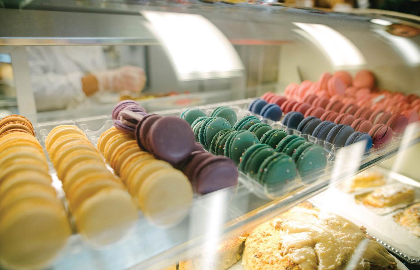 Her 20-plus brightly-colored macarons come in flavors like organic raspberry, red velvet with a cream cheese filling and cookies and cream with crushed, gluten-free Oreos in the center. Seasonal summer flavors include piña colada and margarita. She also hosts macaron decorating classes at Wine & Design.