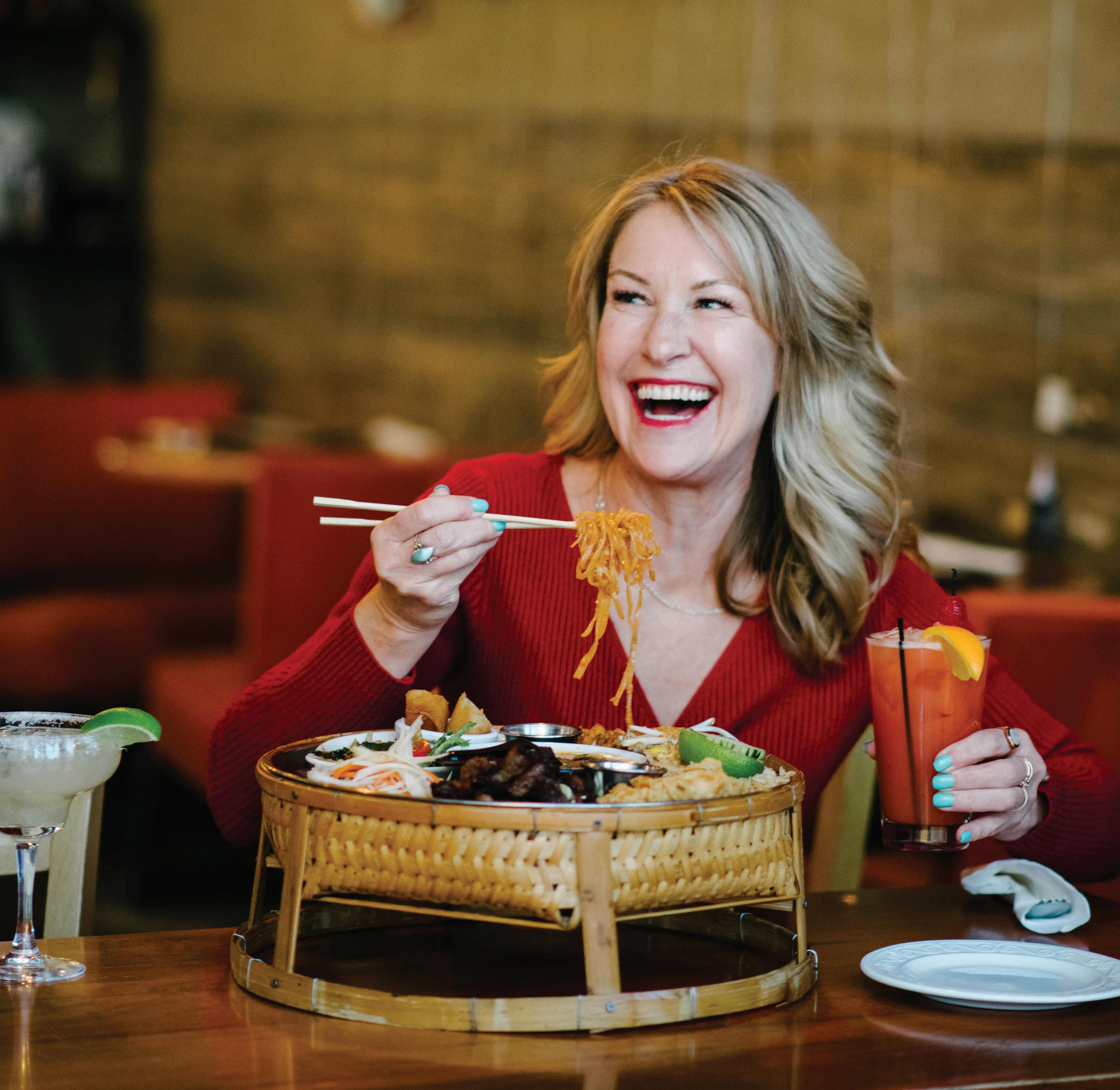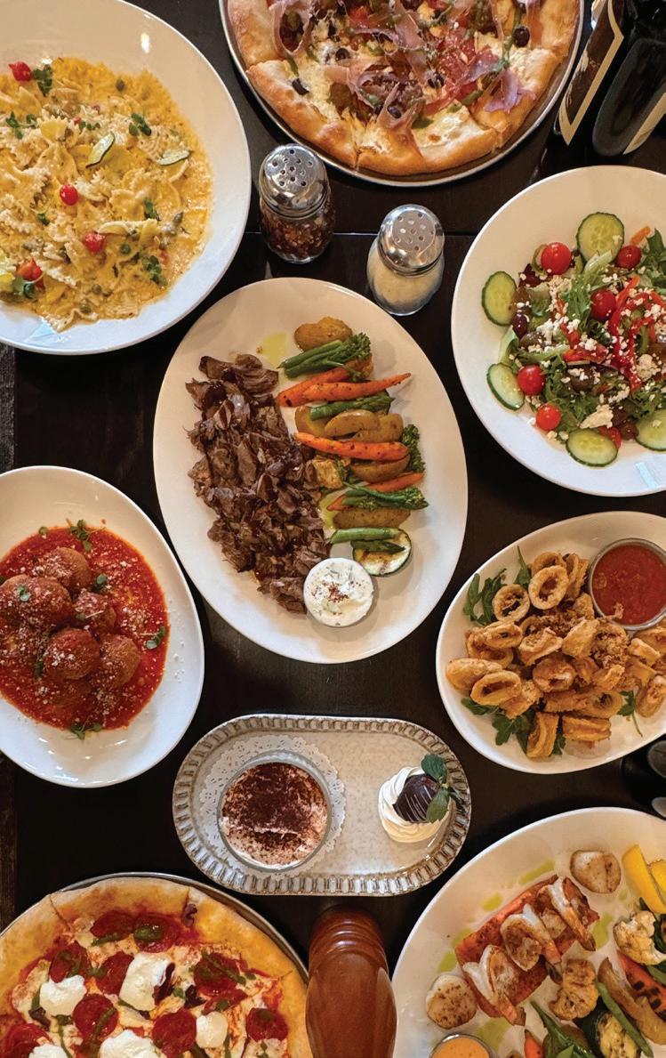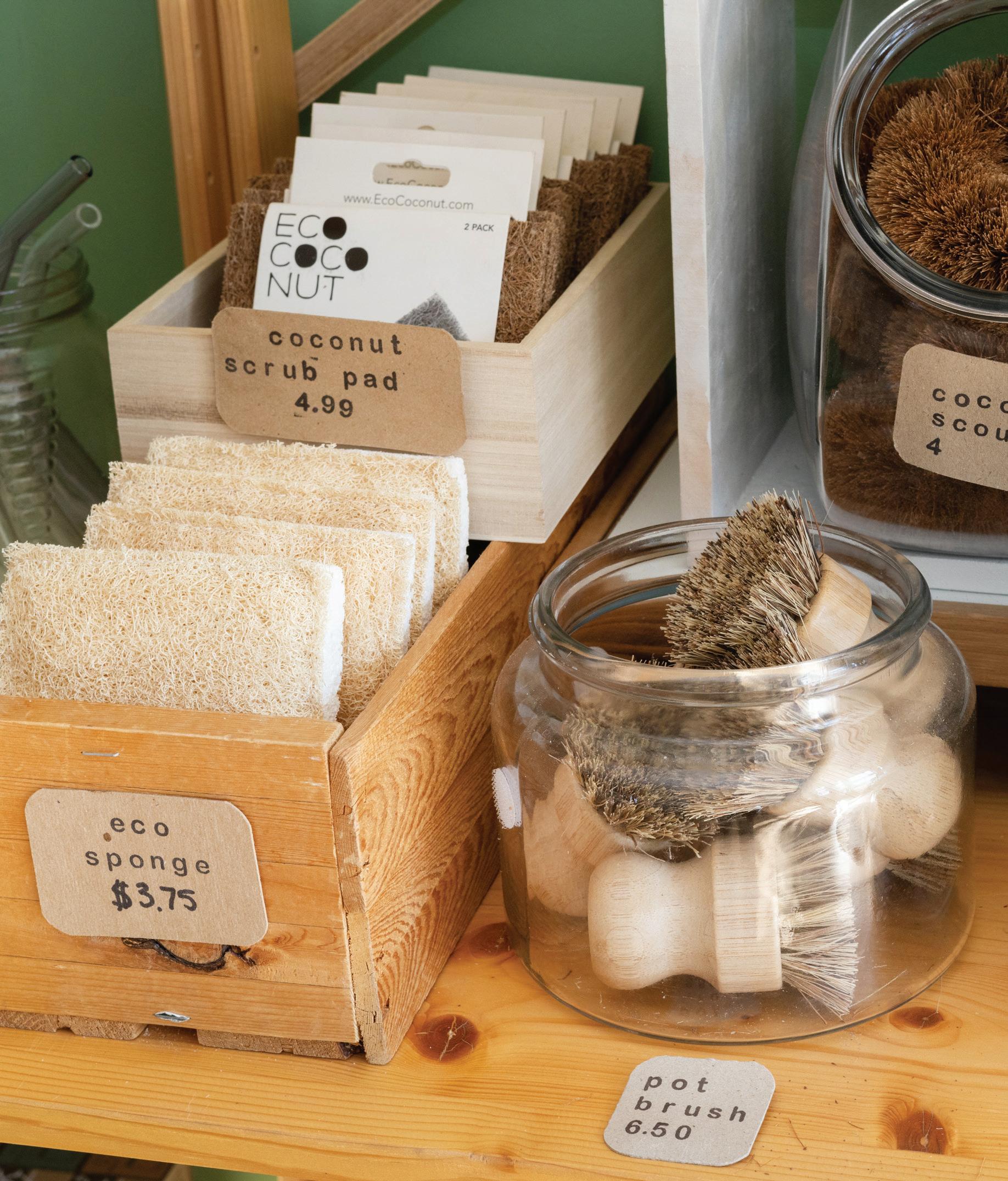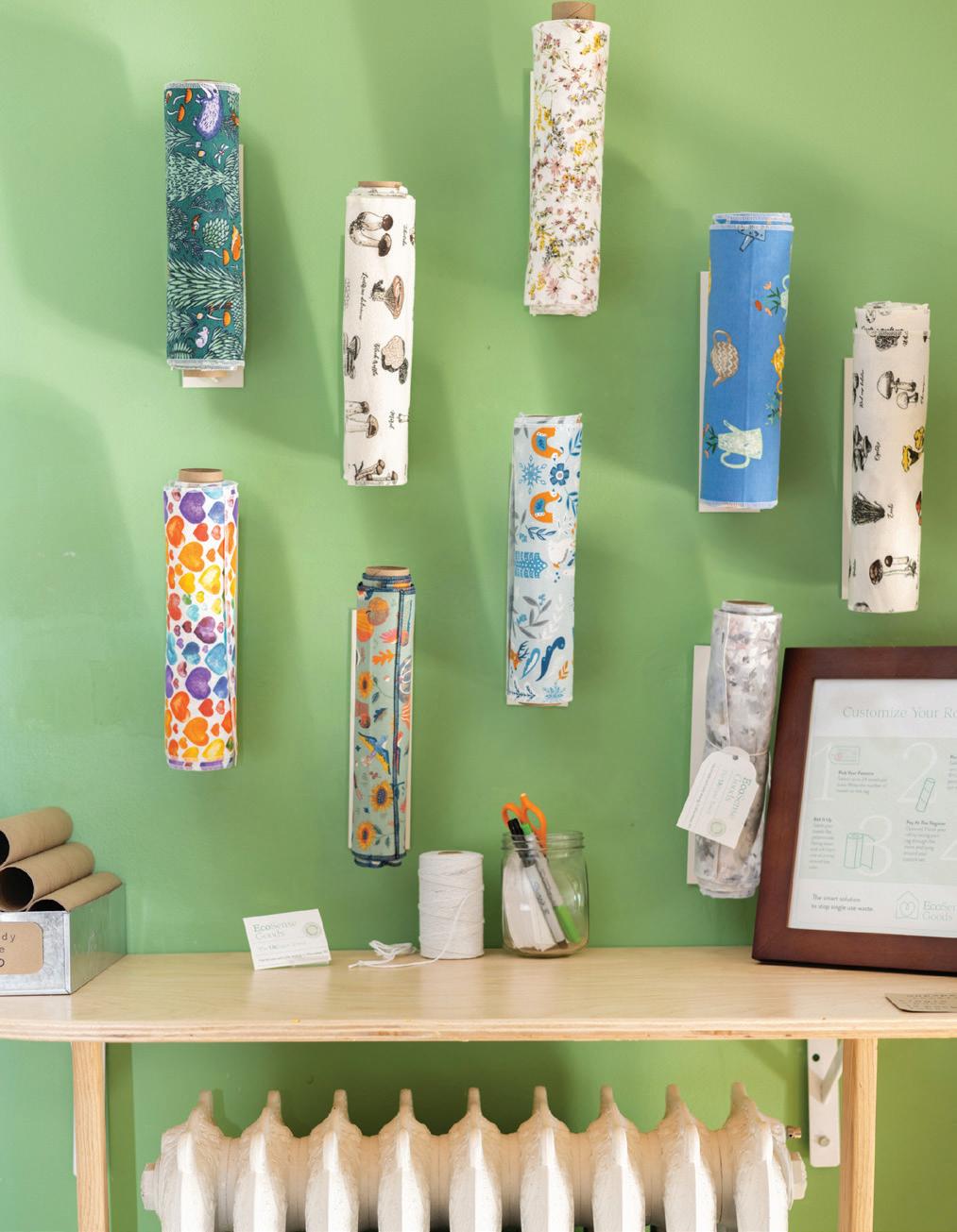 LAST LOOKS | Top left: Founded in 1975, Cambridge’s Rowe Pottery is celebrating its 50th anniversary this year. Shown are jars from the brand’s classic teaberry line, featuring signature cobalt blue designs (P. 9). Top right: Sasha Stone, a 2021 BRAVA Woman to Watch, owns Green Life Trading Co., a sustainability-focused store specializing in bulk goods and green products for home and personal care (P. 35). Bottom: Cover women Richelle Martin, Katie Rice and Heather Wentler are all lady bosses in their own right, working in venture capital and the startup accelerator world (P. 42). Middle: Colorful dishes from Monsoon Siam sit, ready to be enjoyed (P. 71).