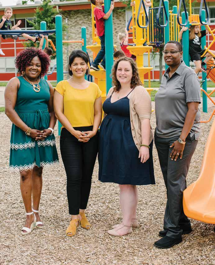 Sonia Spencer, Rosalia Gittens, Rachel Deterding and Ericka Brown are the community resource coordinators for Mendota, Leopold, Lake View and Hawthorne community schools. Photographed by Hillary Schave at Hawthorne Community School.