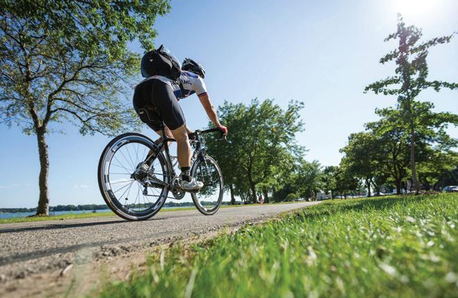 Need to rent a bike? BCycle has 45 docking stations throughout Madison, stocked with Trek electric-assist bicycles. You still pedal, but a boost is available for hills and speeds up to 17 mph with a range of about 30 to 40 miles. You can rent at one docking station and return the bike to a different station. An online and in-app interactive station map shows real-time data for available bikes and vacant docks for returns. Rental options range from $5 for 30 minutes up to $15 for a day pass (unlimited 60-minute rides for 24 hours). Purchase passes at dock kiosks, on their app, or via their website at madison. bcycle.com . Bring your own helmet!