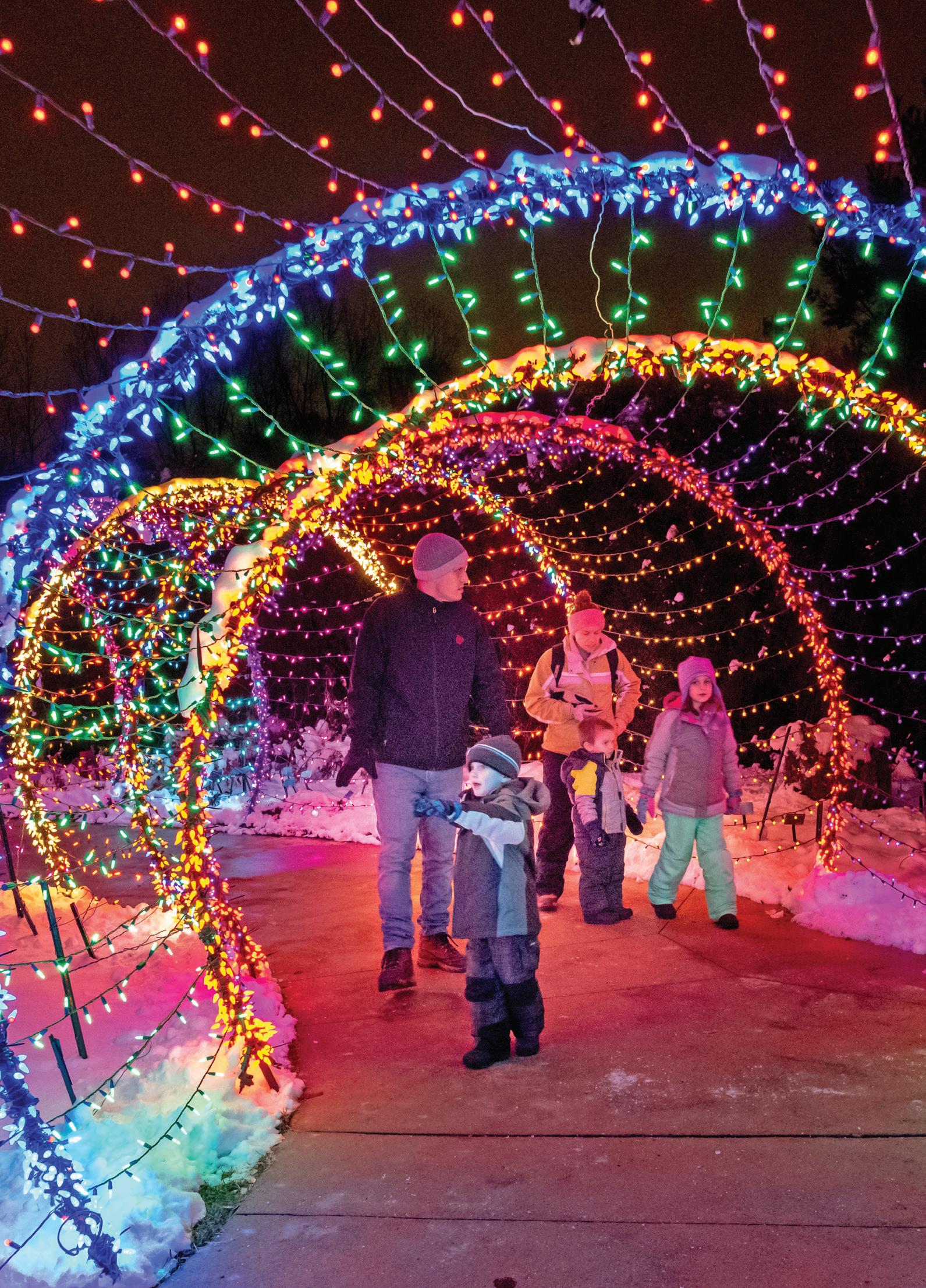 The WPS Garden of Lights at the Green Bay Botanical Garden features more than 350,000 twinkling Christmas lights adorning more than 40 nature-themed holidays. Attendees walk through the gardens to view the nature-themed light displays, including a 60-foot-long caterpillar tunnel. The light display is open on selected nights from Nov. 28 to Dec. 30, and timed tickets must be purchased in advance.