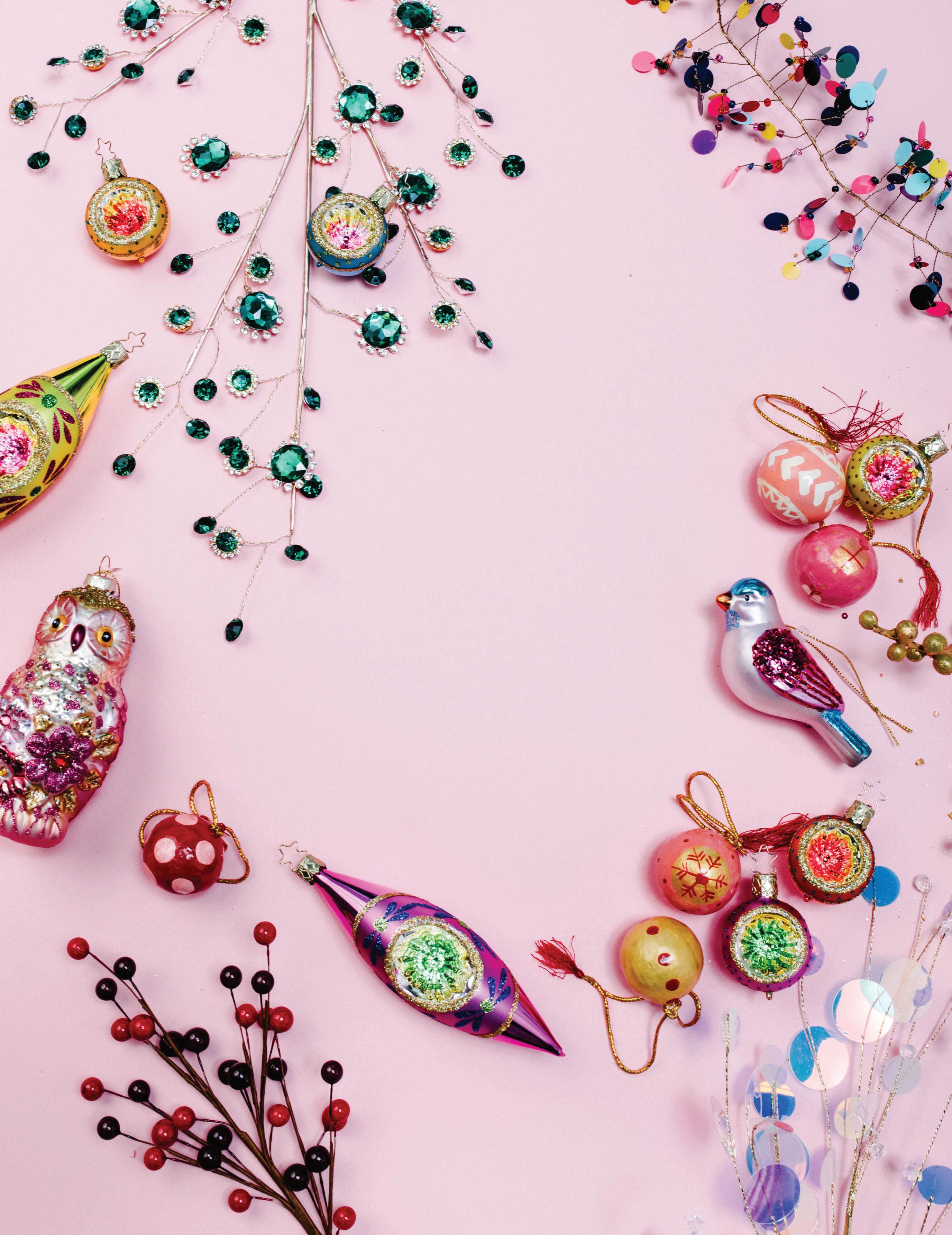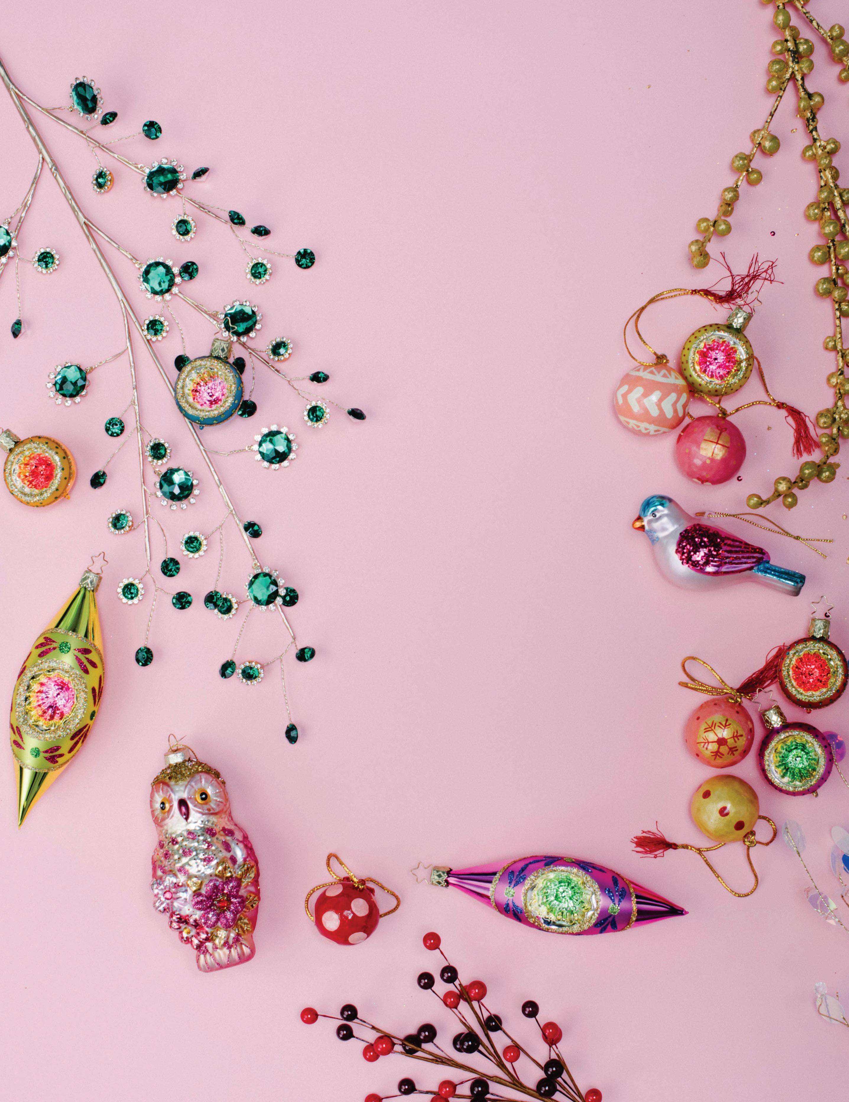 Bruce Company’s ornaments dazzle this holiday season, with hand-painted, papier-mâché and glass varieties. Styling by Shayna Mace and Hillary Schave; photography by Schave. Illustration by Angela Staehling.