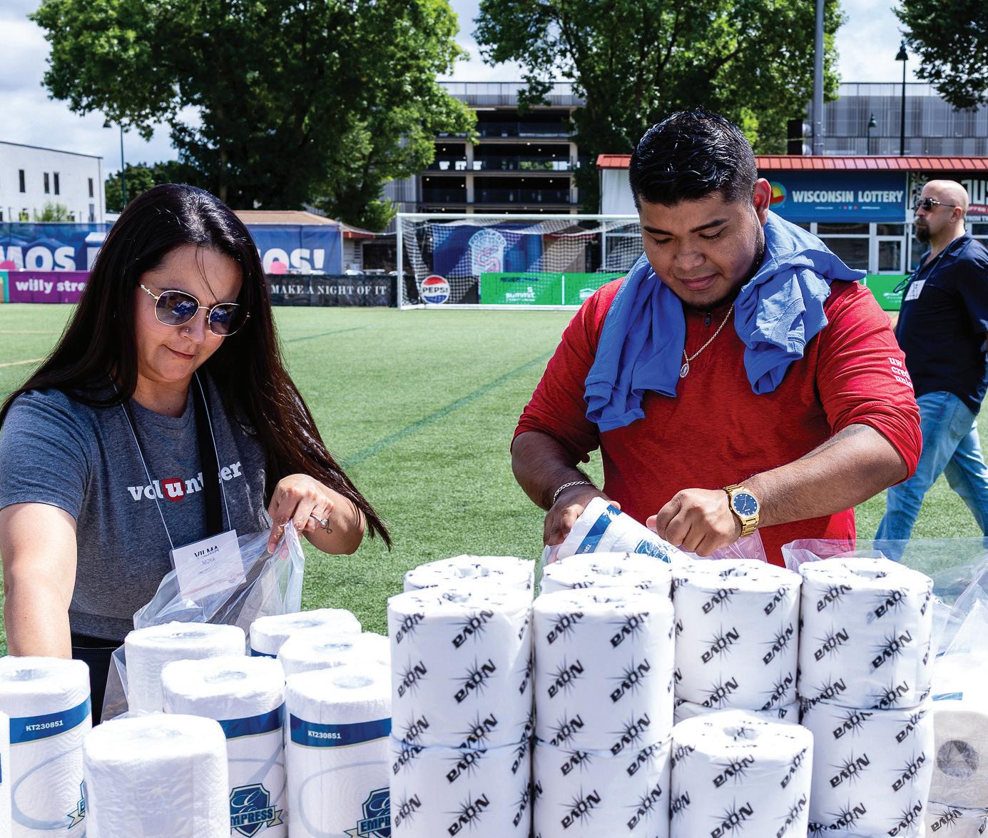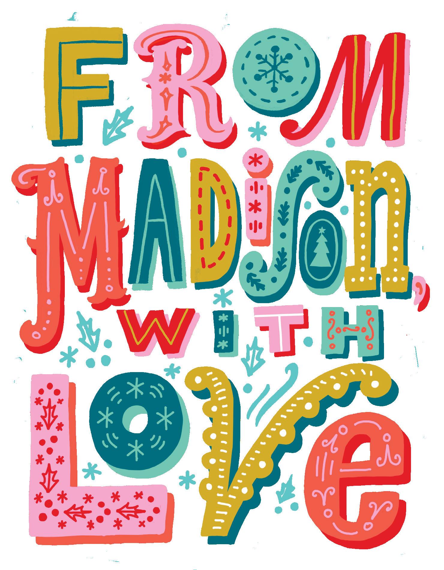 (@haleyum_art). Schulz has worked with other publications throughout the U.S. to tell stories through her beautiful pictures. Working closely with Schulz on our “Give Where You Live” feature (P. 50), we narrowed in on what exactly the components of her illustration would entail. We settled on figures that represent the Ronald McDonald House Charities of Madison, The River Food Pantry, NewBridge, Access Community Health Centers and Sheltering Animals of Abuse Victims. In the background, readers will spot Lake Monona, the capitol building and Monona Terrace. This illustration really captures the essence of how you can give back in so many ways to Madisonarea nonprofits, including volunteering your time, donating supplies and money, and spreading the word about their work.