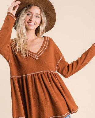 When are stripes not in style? This navy and white pick pairs up with endless closet options. French Connection Tommy rib longsleeve top, $68 , Cosa Boutique