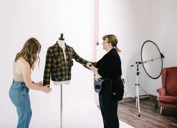 Middle: Styling clothing always takes a bit of extra care to make sure each piece photographs correctly. Here, editorial intern Mason Braasch and assistant editorial director Shelby Rowe Moyer work in photographer Hillary Schave’s studio.