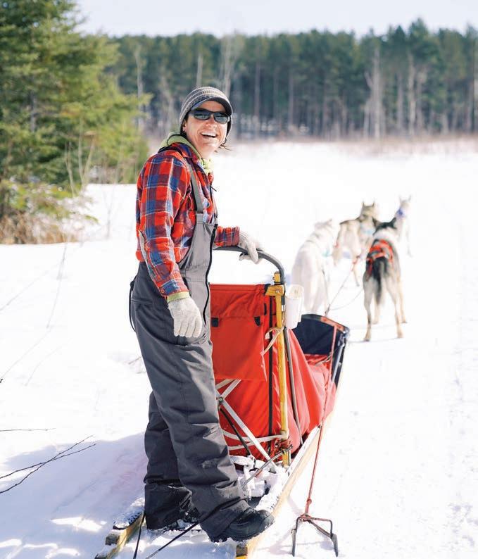 Mushing, one of Wisconsin’s few dog-sledding businesses. The experience starts by meeting the dogs and loving them up, says owner Jen Dale, then learning to harness them and drive a sled — because it’s the customers who do the mushing.