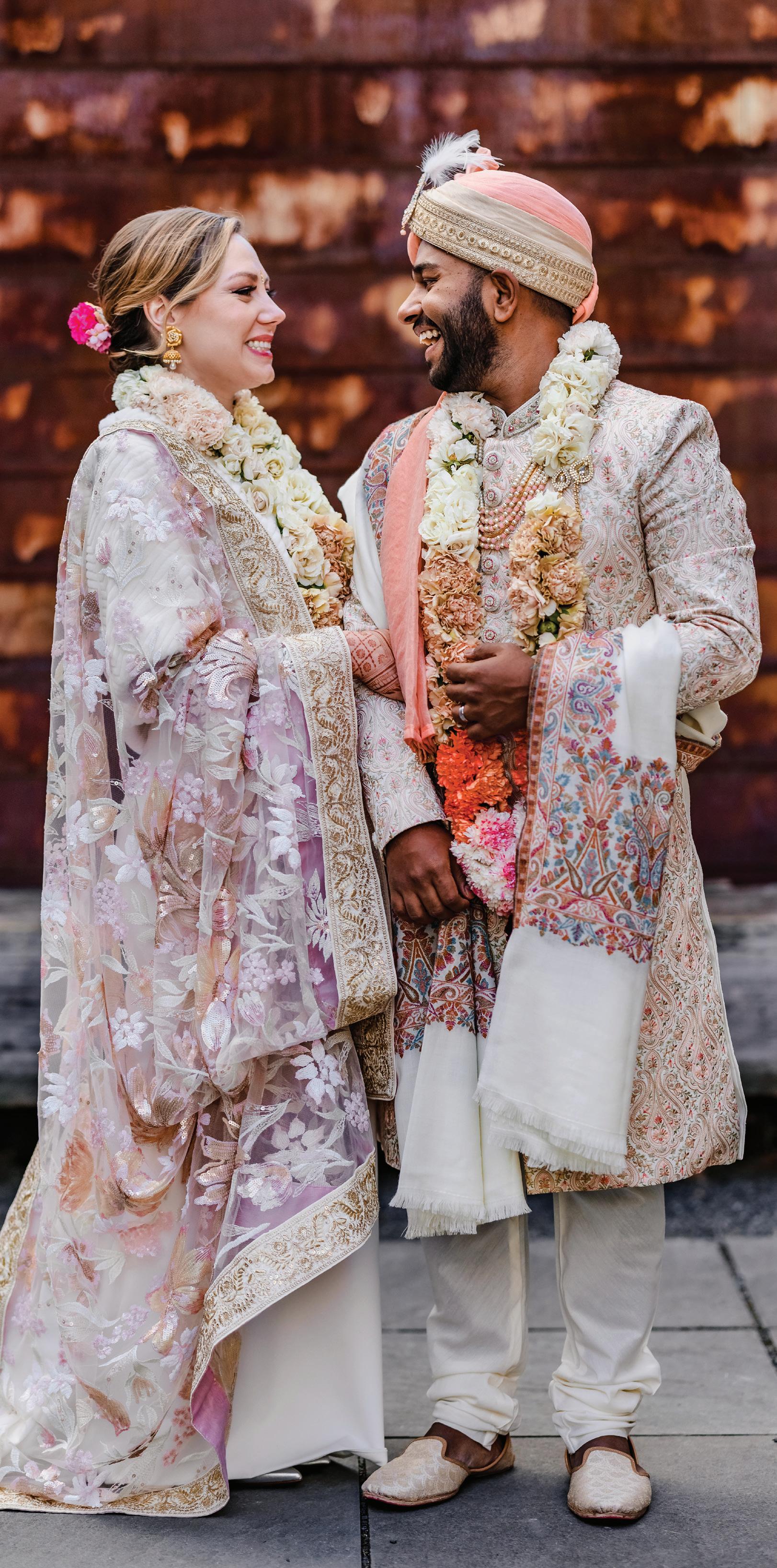Kara and Mrig wanted the festivities to be representative of their different cultures. The ceremony blended traditions and cultures, including Mrig’s Hindu traditions like the exchange of garlands, vows exchanged through the Hindu Saat Phere and the application of sindoor to Kara’s scalp. Kara’s traditions followed, with a poem reading, personal vows and a ring exchange.