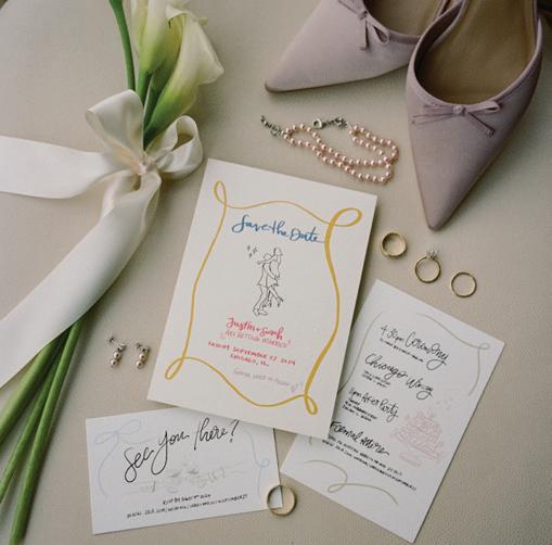 Step back with me to the fall of 2019. I was living in Fargo, North Dakota (yes, like the movie), newly engaged and ready to plan my wedding. I was working at a local magazine, which gave me a strong starting point — I had connections, a vision and a graphic design minor that I put to use creating my own invitation suite. We’d celebrate at The Rourke Art Gallery & Museum, surrounded by colorful vintage furniture, orchidfilled florals and the people we loved most. I even made a special trip to Minneapolis with my mom to find my dream gown. Everything was falling into place.