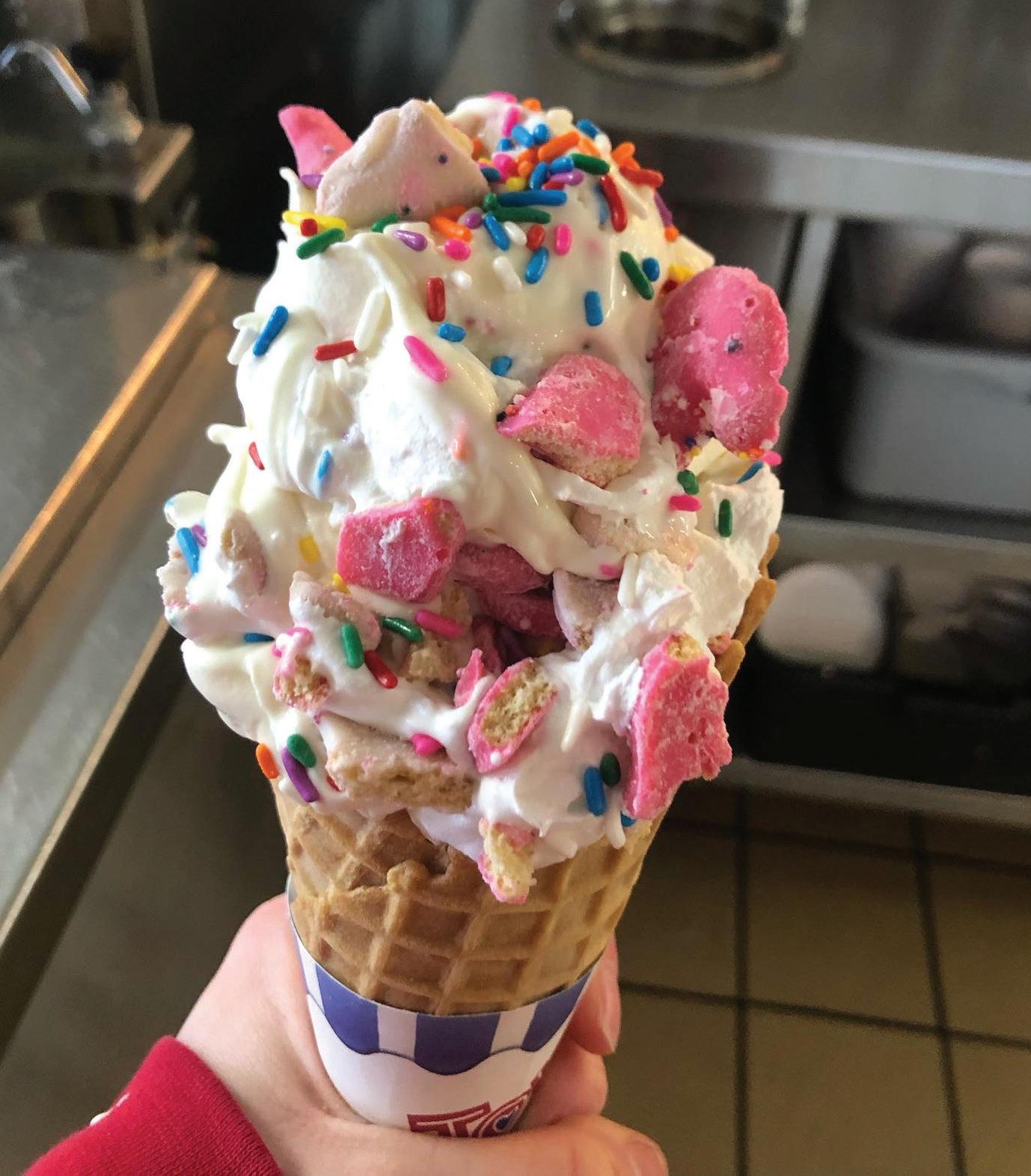 Tucked into 3rd St. Market Hall (inside The Avenue in downtown Milwaukee) since 2022, this frozen-custard and burgers spot publishes a Custard Calendar announcing flavors in advance. These are accented by sweet ingredients, with recent examples that include Love Handle: vanilla sponge cake, Golden Oreos, strawberry preserves and whipped cream. If the flavor-of-the-day isn’t hitting the spot, you can DIY your own sundae by choosing a custard flavor, then customizing with as many of the 21 toppings as you’d like, from your favorite chocolate and candy brands and cereal crunch to marshmallow fluff and whipped cream.