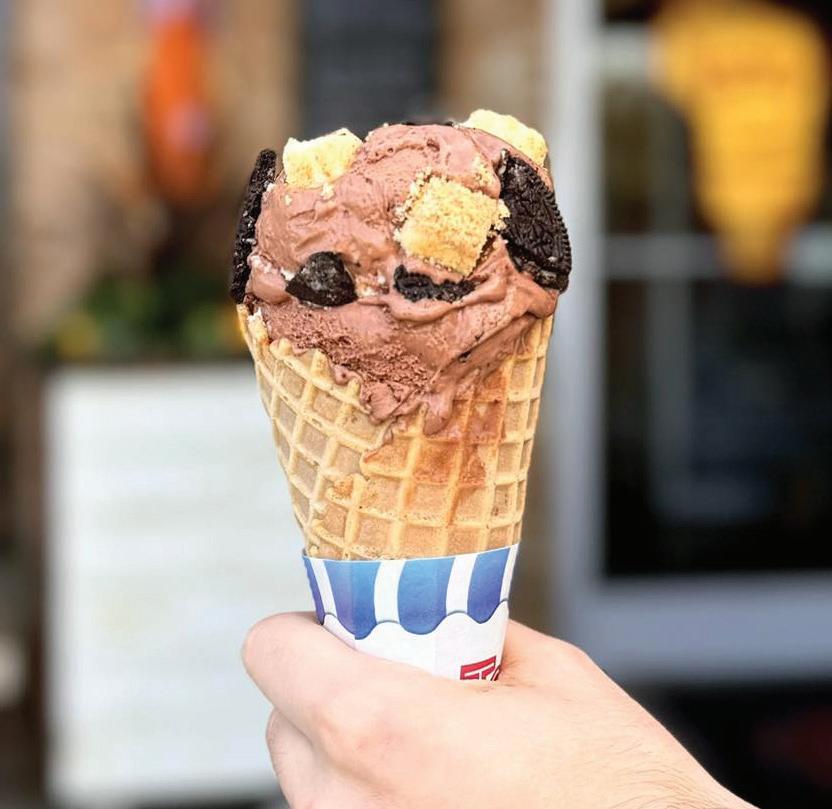 treehouse and open year-round. Late founder George Liapis’ nickname was Georgie Porgie, hence the name of this frozencustard stand, which is now operated by George’s sons. The Flavor Forecast reveals the day’s flavor as well as tomorrow’s flavor: recently, it was Double Chocolate Cheesecake. Vanilla and chocolate are scooped daily, and butter pecan every Friday. Five sundaes, plus a sundae of the month, include Churro Sundae and Banana Cream Pie. Another unique item are Blitzes: frozen custard blended with one of 25 savory and sweet toppings, from salted pretzels to cake pieces.
