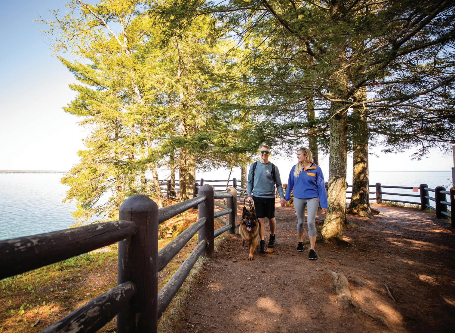 forest. Located next to the Ottawa Lake and Rice Lake boat launches, your dog can take advantage of multiple pet swim areas. If hiking is more your speed, there are multiple loop trails calling your dog’s name. Be on the lookout for nature trails marked as not allowing leashed dogs. This state park boasts a family-friendly atmosphere with multiple family campgrounds.