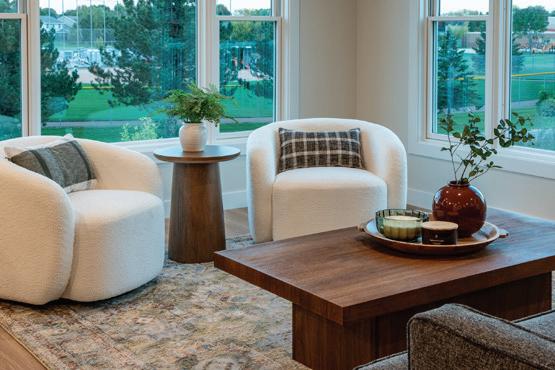 wood accents. The kitchen, dining room, great room and three-season room make up a comfortable gathering space for the home, while the executive suite includes a relaxing European-style bathroom and custom-tailored closet.