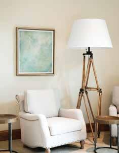 “Fabric-adorned walls, linen-printed drapery treatments and vintage Chippendalestyle rattan chairs add warmth and a more casual feel to the space. I chose these elements to create a timeless room that is inviting and beautiful,” says Johnstone Paschke.