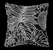 (Clockwise from top left) Black bamboo lantern, $40, worldmarket.com; Mad Mats 4x6 palm outdoor rug, $50, Pesche’s Greenhouse, Floral Design and Gift Gallery; Sunbrella palm leaf outdoor pillow, $65, and Santiago fruit outdoor pillow, $25, both from worldmarket.com; braided natural pouf, $260, Brick & Mortar Home and Outdoor; and Fitz and Floyd Tropical Fun melamine salad and dinner plates, $4.99 & $7.99, bedbathbeyond.com Afunpop ofcolor!