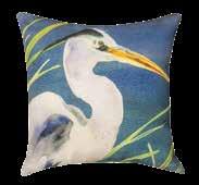 (Clockwise from top left) Climaweave crane outdoor pillow, $30, Pesche’s Greenhouse, Floral Design and Gift Gallery; limestone melamine dinner plate, $15, Brick & Mortar Home and Outdoor; Polywood Presidential Aruba rocker, $257, Home Depot; metal log holder, $55, and Surreal Oak planter, $40, both from Pesche’s Greenhouse, Floral Design and Gift Gallery; and Bryson Round Drum, $149, Brick & Mortar Home and Outdoor