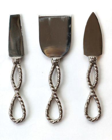 toP roW, left to right: merritt international, 9.5” artisan Tile Plate, oceania Pattern, $15; Two’s Company, rope Cheese knives, $42; merritt international, medallion Plate, 11.5,” $14; artisan Tile Plate, oceania Pattern, $15; medallion Plate, 7.5”, $11. MiDDle roW, left to right: laguiole, debutant 24-piece flatware box set, $270; Saro Trading, Woven nubby Placement (natural), $9 each and Saro, Classic design napkin (ivory), $7 each BottoM roW, left to right: Barreveld river Stone Placemat, (Black/White), $10; kalalou, Candle holders with rope accent, Small - $29, med. - $44 and large - $62; (vance kitira candles sold separately); k&k interiors, metal Spoon napkin holder, $20