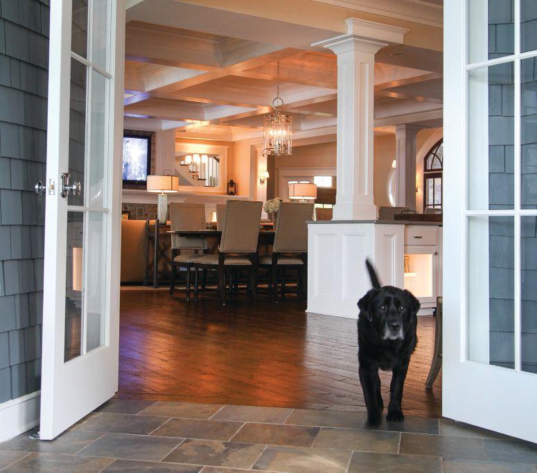 Their guiding principle in choosing interior finishes was to create a space that could withstand the rigors of daily living. “We wanted the interior to look distressed and yet elegant,” explains Tina Pickell, adding that they wanted, “no worries about people having to take off their shoes,” as well as a home where “dogs can roam without worries about damage.”